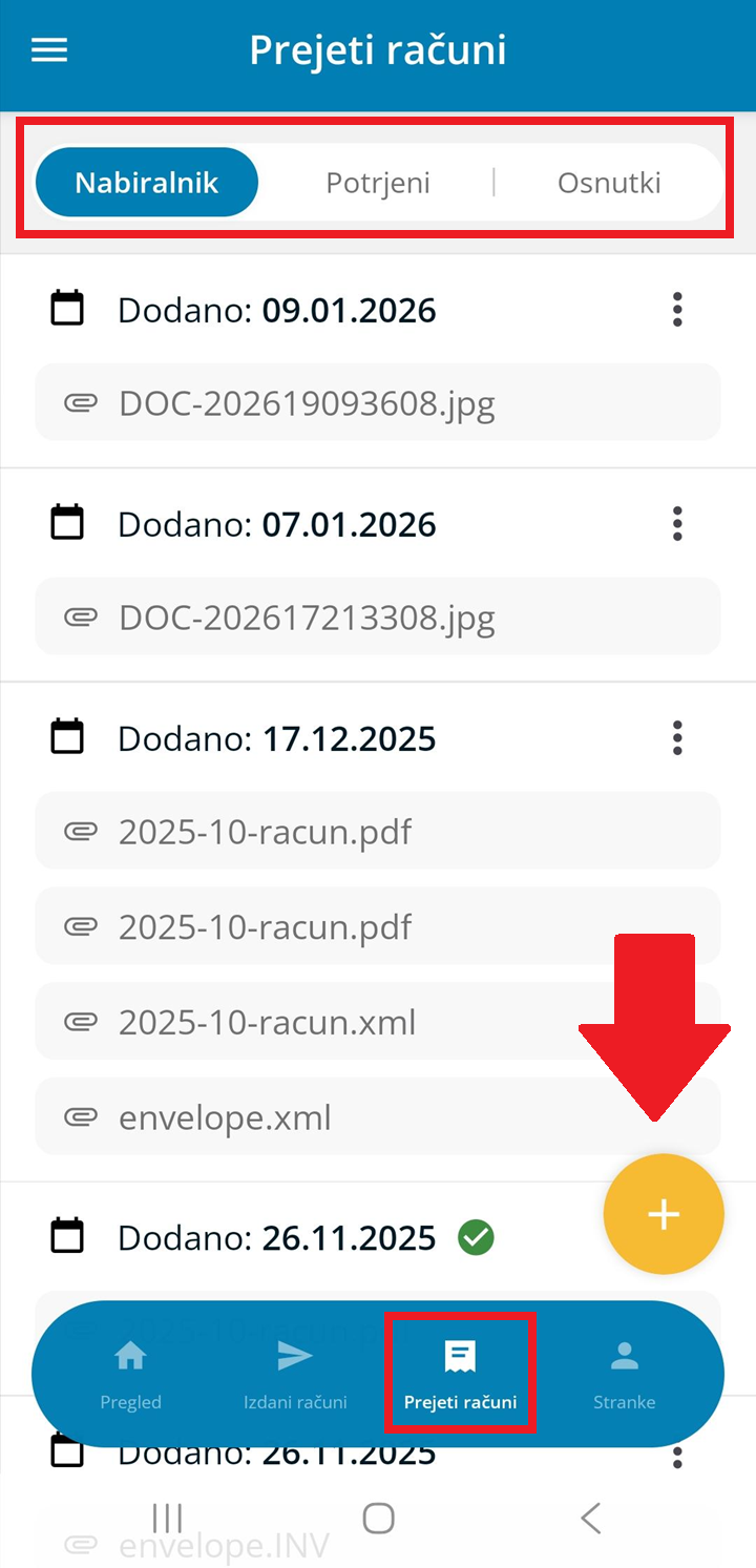 - dokumente prejetih računov, ki jih imamo dodane v nabiralniku,