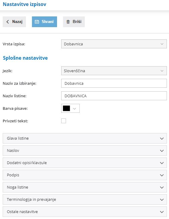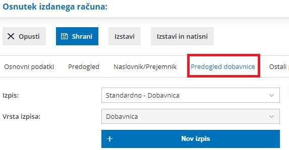 - Nastavitev izpisa dobavnice urejamo neposredno na dobavnici.