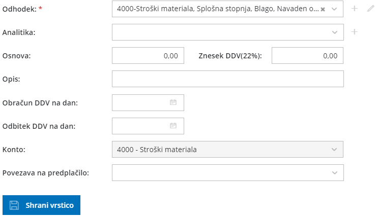 - Če je na računu več odhodkov, kliknemo na Shrani in nov ter jih dodamo na enak način.