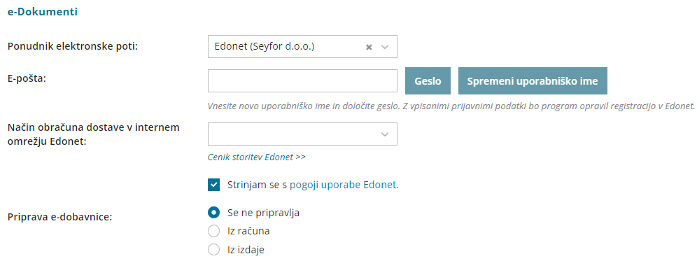 - registriran za prejemanje e-dokumentov pri Edonet.
